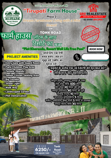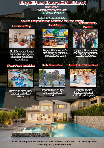 🌿 Experience the best of nature and modern living at Tirupati Farm House with Ocean Water Park. This is a golden opportunity to buy your dream property.
